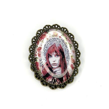Birkin On air Pouw celles qui aiment les bwoches Fond sonore Métal apprêt bronze, image CdP, verre Hauteur : 5 cm 30 € Type de produit: Broches