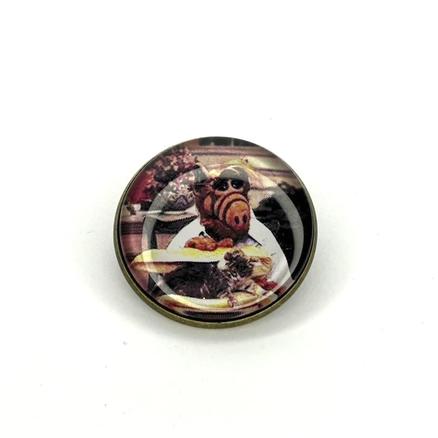 Miaouuuuu Simply Le plus marrant des bouffeurs de chats Funky Metal apprêt bronze, verre, image CdP Diamètre : 3,5 cm 20 € Type de produit: Broches