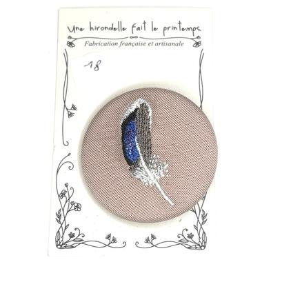 De zozio Description du bijou Badge délicatement brodé par " Une Hirondelle fait le printemps". Détail Coton, fils à broder, métal argenté. Diamètre : 4 cm. 18 € Type de produit: Broches