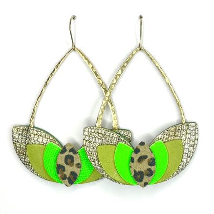 New ! En peau de serpent Sous le chapeau de cow-boy Briller sous un soleil eblouissant Dans les bottes Acier inoxydable, cuir recyclé, laiton Longueur : 7 cm 45 € Type de produit: Boucles d'oreilles