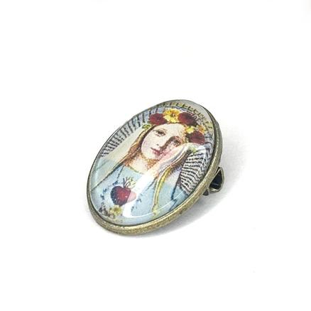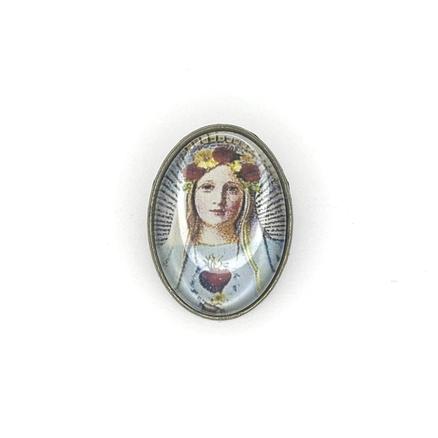 Sainte Portugaise Ce que je vois Pour celles qui aiment appraître là où on ne les attend pas ! Ce que je crois Métal apprêt bronze, verre, image CdP Hauteur : 2,5 cm 20 € Type de produit: Broches