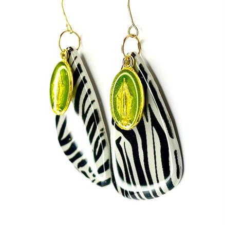 New ! The new léopard Ce que je vois Pour celles qui pensent que Dieu est un zèbre Ce que je crois Acier inoxydable, métal doré, médaille upcyclée, résine, pâte polymère sérigraphiée Longueur : 5 cm 39 € Type de produit: Boucles d'oreilles