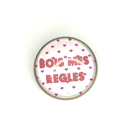 Métal apprêt bronze, verre, image CdP, punchline Valentin 2016. Couleur : rose. Diamètre : 3 cm.