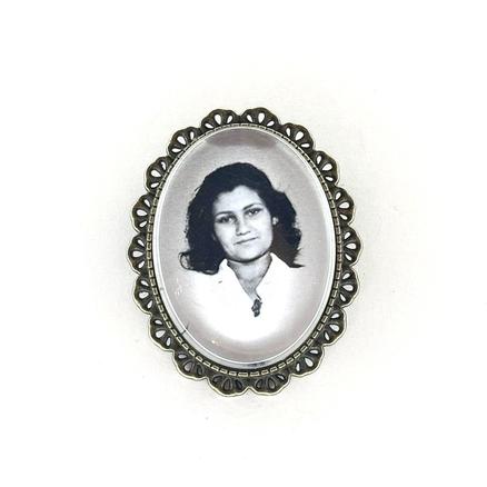13/07/1927-30/06/2017 Simone Veil Aussi longtemps qu'on s'entend, qu'on partage, on vit ensemble. Féminin Métal apprêt doré, image CdP, verre Hauteur : 4,5 cm 30 € Type de produit: Broches