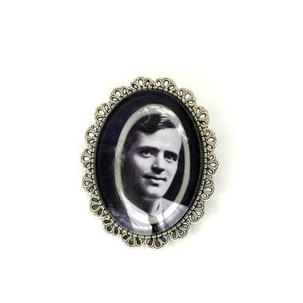 1882/1941 Jack London " Avant, je ne savais pas que la beauté avait un sens." Détails Métal argenté, image CdP, verre Hauteur : 4,5 cm. 30 € Type de produit: Broches