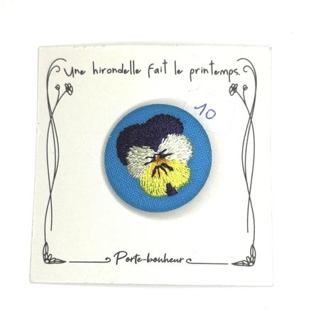 Mignonnerie Eat me Baddge délicatement brodé par " Une hirondelle fait le printemps " Drink me Métal argenté, coton Diamètre : 2 cm 10 € Type de produit: Broches