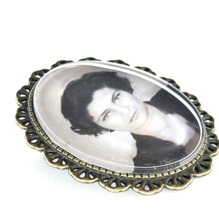 13/07/1927-30/06/2017 Simone Veil Aussi longtemps qu'on s'entend, qu'on partage, on vit ensemble. Féminin Métal apprêt bronze, image CdP, verre Hauteur : 4,5 cm 30 € Type de produit: Broches