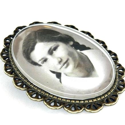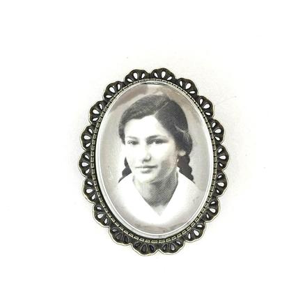 13/07/1927-30/06/2017 Simone Veil Aussi longtemps qu'on s'entend, qu'on partage, on vit ensemble. Féminin Métal apprêt bronze, image CdP, verre Hauteur : 4,5 cm 30 € Type de produit: Broches