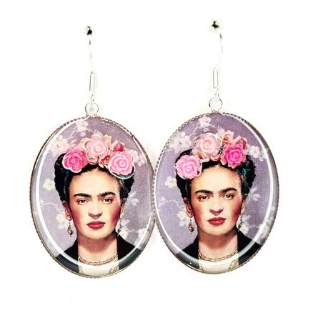 Frida Kahlo ( 1907/1941 ) Joya de fantasia Tu mérites un amour qui t'écoute quand tu chantes Detalles Métal argenté, image CdP, résine moulée, résine crystal Longueur : 4 cm 36 € Type de produit: Boucles d'oreilles