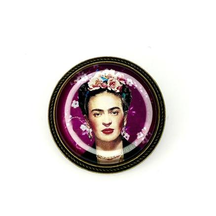 1907/1954 Frida Kahlo " Si seulement nos yeux voyaient des âmes au lieu des corps " Detalles Métal apprêt bronze, image CdP, verre Diamètre : 3,5 cm 30 € Type de produit: Broches
