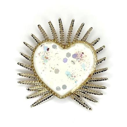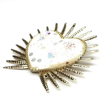 New ! Pluie d'étoiles Vers l'infini Un exvoto de l'espace Et au-delà ! Acier inoxydable, pate polymère, paillettes, résine Hauteur : 5 cm 28 € Type de produit: Broches