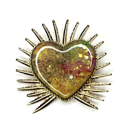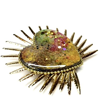 New ! Pluie d'étoiles Vers l'infini Un exvoto de l'espace Et au-delà ! Acier inoxydable, pate polymère, paillettes, résine Hauteur : 5 cm 28 € Type de produit: Broches