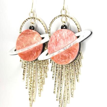 Orange is the new bop Vers l'infini Prête à aller clubber ! Et au-delà ! Acier inoxydable, métal argenté, plexi découpé au laser Longueur : 8 cm 45 € Type de produit: Boucles d'oreilles