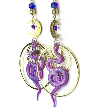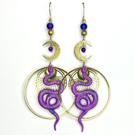 New ! Serpent de nuit Vers l'infini Pour les mystiques Et au-delà ! Acier inoxydable, résine moulée, paillettes, verre, métal doré Longueur : 7 cm 55 € Type de produit: Boucles d'oreilles