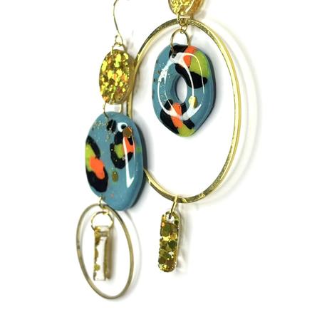 New ! Avec paillettes ! Jungle Scintillantes, pour les léopard addict Fever Acier inoxydable, pâte polymère sérigraphiée, résine, laiton, paillettes Longueur : 7 cm 49 € Type de produit: Boucles d'oreilles