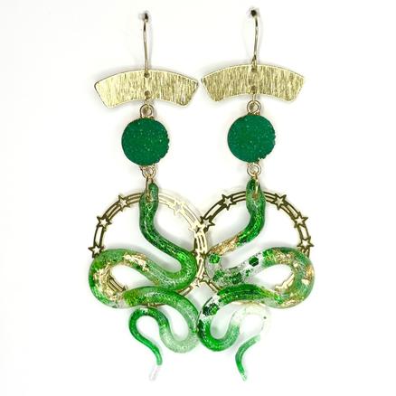 Sssssplendide ! Jungle Pour les mystiques Fever Acier inoxydable, métal doré, résine, peinture, feuille de cuivre Longueur : 6,5 cm 49 € Type de produit: Boucles d'oreilles