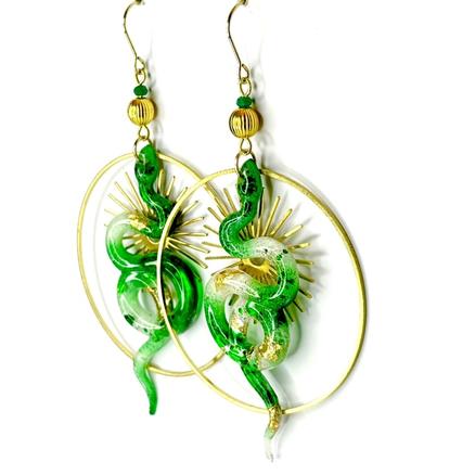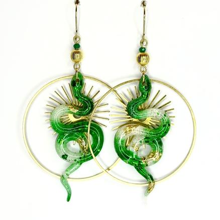New ! Sssssplendide ! Jungle Pour les langues de vipères Fever Acier inoxydable, métal doré, résine, peinture, feuille de cuivre, perle verre Longueur : 7 cm 49 € Type de produit: Boucles d'oreilles