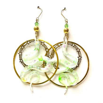 Polaires Jungle Pour celles qui ont l'air froid Fever Acier inoxydable, métal doré, résine, peinture, feuille de cuivre, perle verre Longueur : 6,5 cm 49 € Type de produit: Boucles d'oreilles