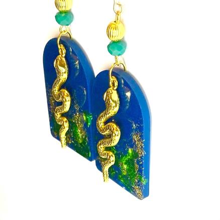 Acier inoxydable, métal doré, résine, feuille de cuivre, perle verre