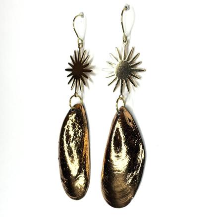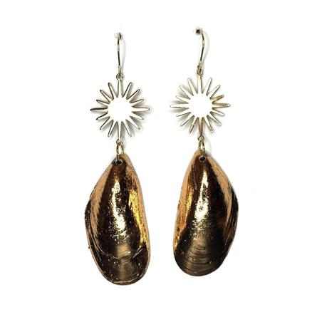 Trésor de la mer Front de mer Pour les sirénes royales. Dans l'huître Acier inoxydable, pâte polymère, résine, laiton, peinture, coquillage Longueur : 4,5 cm. 36 € Type de produit: Boucles d'oreilles