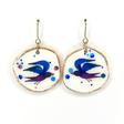 New ! Parler oiseau Poésie Pour celles qui savent où elles volent Sous le verre Acier inoxydable, métal doré, résine, pâte polymère, paillettes Longueur : 2,5 cm 28 € Type de produit: Boucles d'oreilles