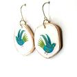 New ! Parler oiseau Poésie Pour celles qui savent où elles volent Sous le verre Acier inoxydable, métal doré, résine, pâte polymère Longueur : 2,5 cm 28 € Type de produit: Boucles d'oreilles
