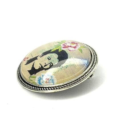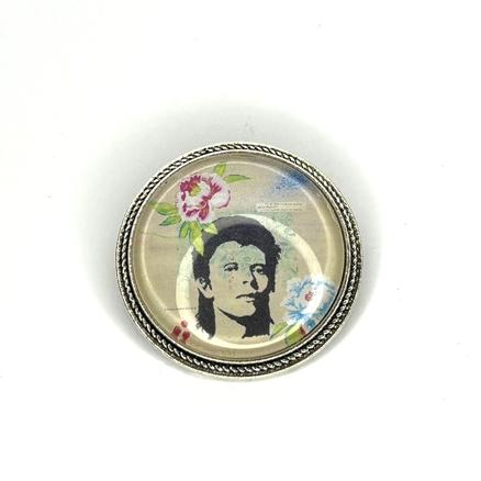 ROBERT JONES ( BOWIE ) 3 pâtés 8 Janvier 1947/ 10 Janvier 2016 2 avés Métal argenté, verre, peinture de Soeur Emmanuelle Diamètre : 3,5 cm 30 € Type de produit: Broches