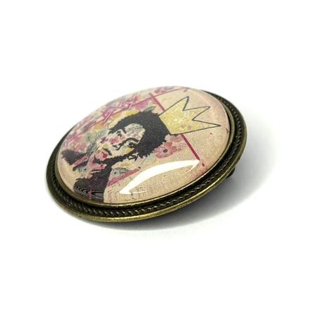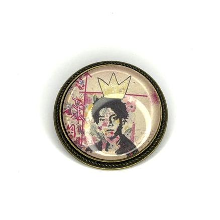 New ! BASQUIAT 3 pâtés 22 Décembre 1960/ 12 Août 1988 2 avés Métal apprêt bronze, verre, peinture de Soeur Emmanuelle Diamètre : 3,5 cm 30 € Type de produit: Broches