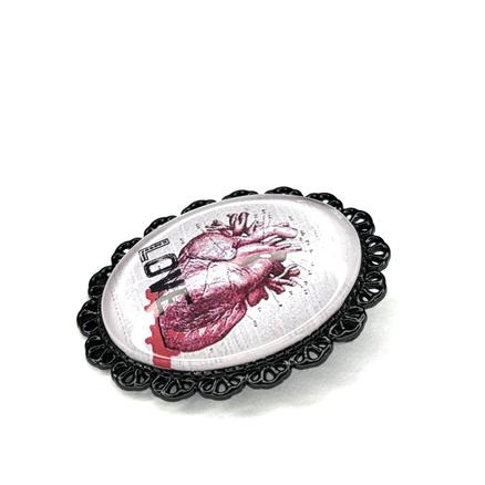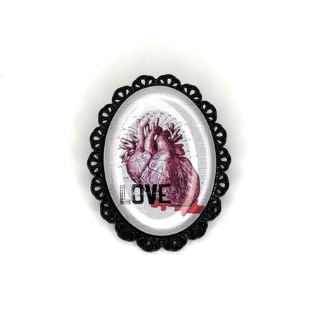Anatomik 3 pâtés L'amour c'est dégoûtant. 2 avés Métal apprêt blac, verre, peinture de Soeur Emmanuelle Hauteur : 4,5 cm 30 € Type de produit: Broches